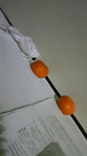 なぜかベッドに転がる蜜柑とマスク
